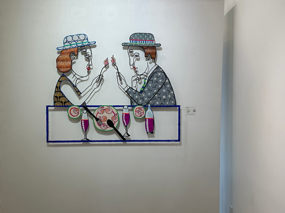 Ryan Art Gallery is proud to present the latest works by Katie Crown, an artist who finds profound power in the whimsical and the human. This collection of paintings and metal sculptures captures the vibrant energy of the California coast alongside the quiet, complex rhythms of social life. Each piece is born from the intimate act of drawing—a lifelong habit for Crown—allowing her to explore how humor, color, and movement can transform the stresses of modern living into a source of light.